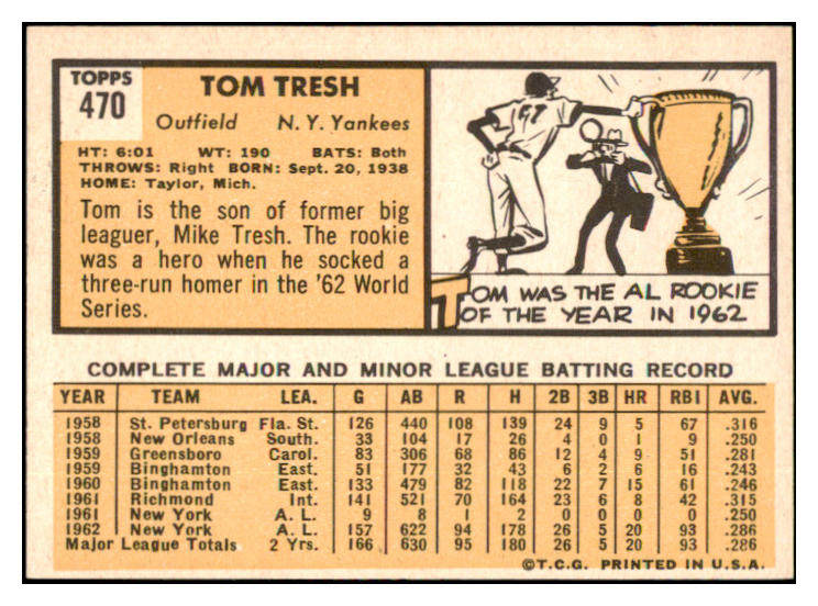 1963 Topps Baseball #470 Tom Tresh Yankees EX-MT 531652