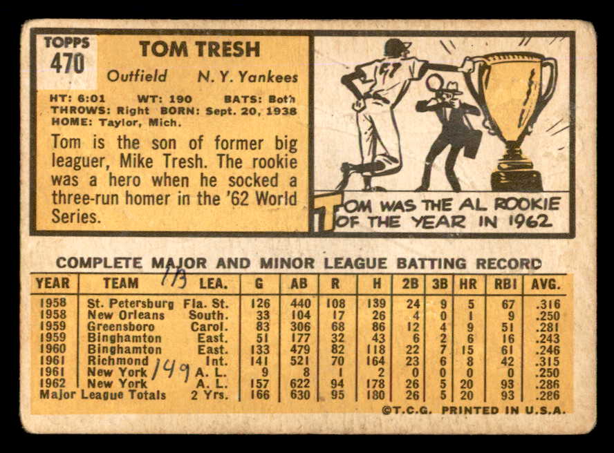 1963 Topps Baseball #470 Tom Tresh Yankees FR-GD 540594