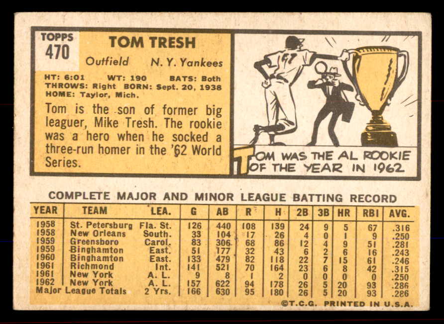 1963 Topps Baseball #470 Tom Tresh Yankees VG-EX 545369