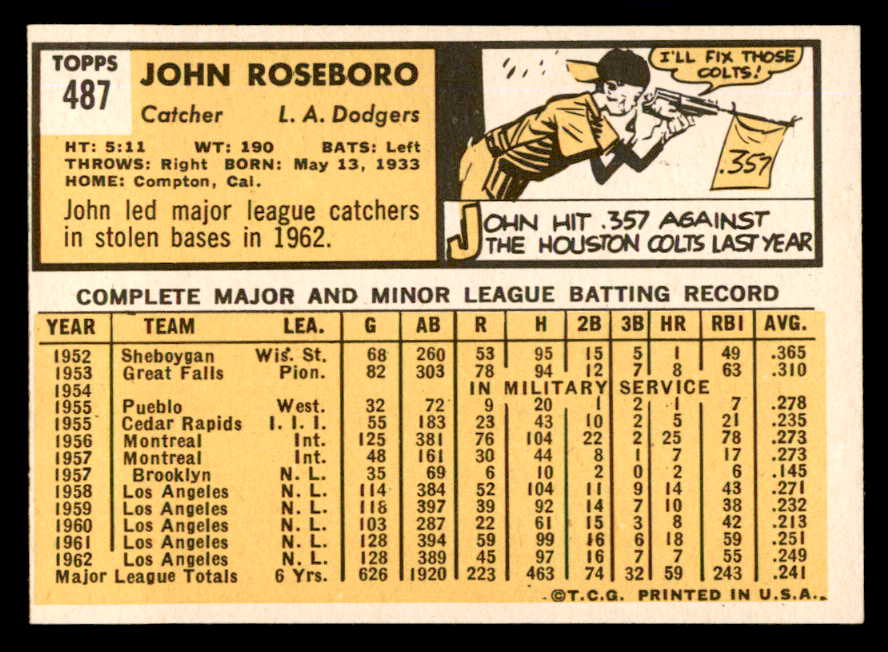 1963 Topps Baseball #487 John Roseboro Dodgers NR-MT 540629