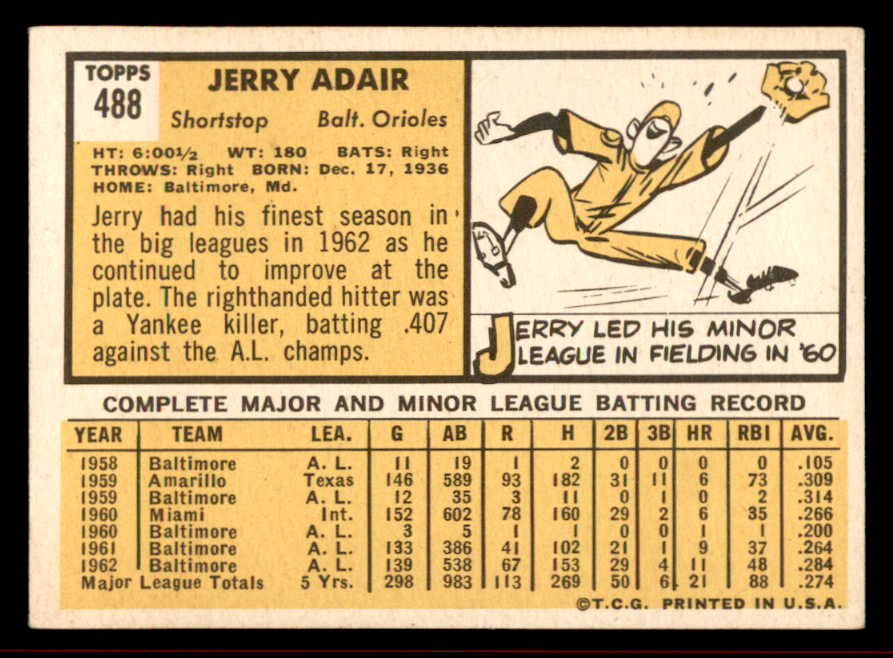 1963 Topps Baseball #488 Jerry Adair Orioles EX-MT 542916