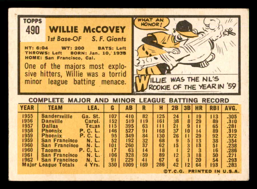1963 Topps Baseball #490 Willie McCovey Giants EX 540638
