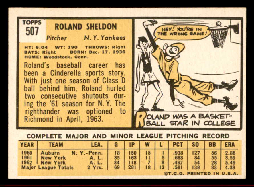 1963 Topps Baseball #507 Roland Sheldon Yankees NR-MT 542876