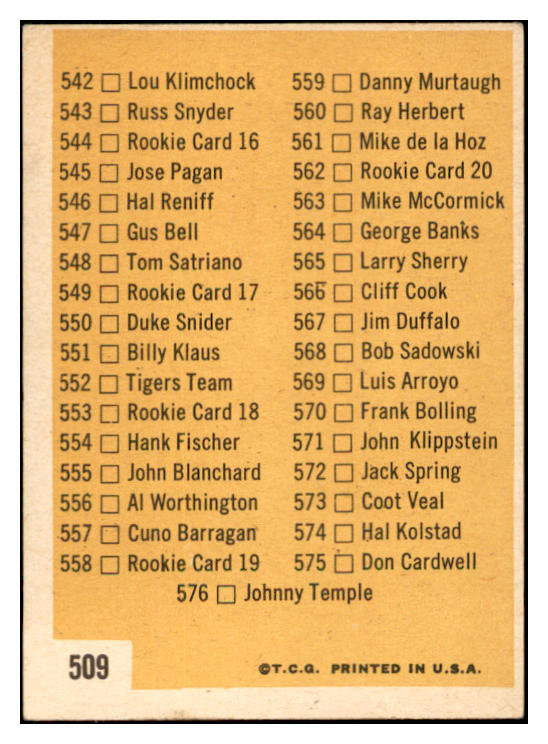 1963 Topps Baseball #509 Checklist 7 EX unmarked 534255