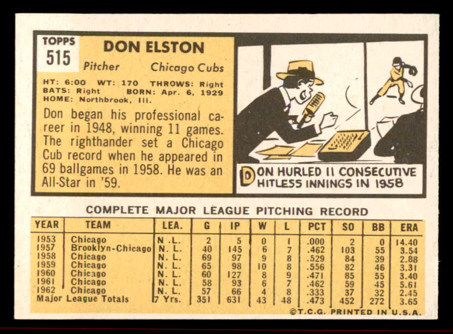 1963 Topps Baseball #515 Don Elston Cubs NR-MT 542880