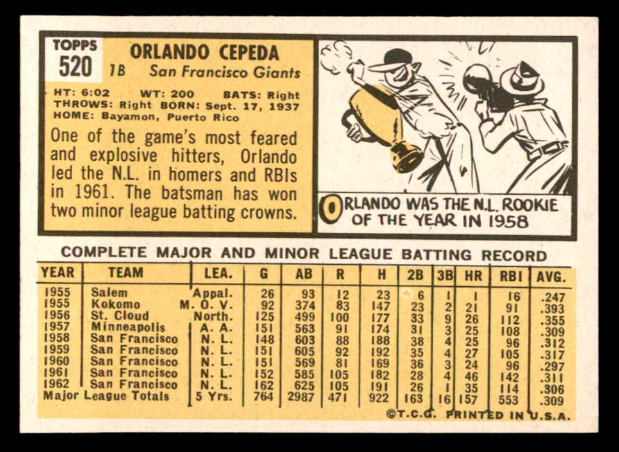 1963 Topps Baseball #520 Orlando Cepeda Giants NR-MT 540666