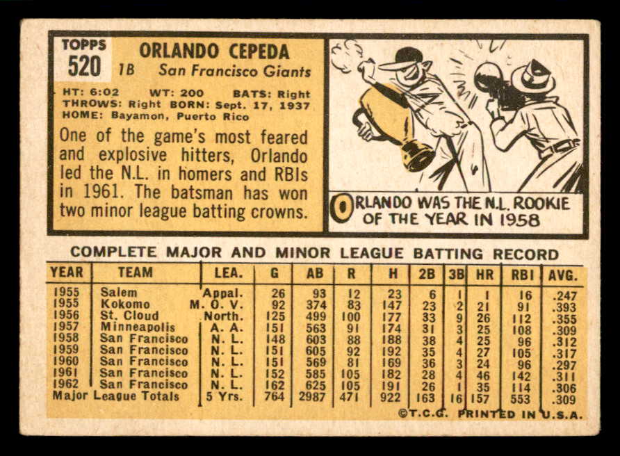 1963 Topps Baseball #520 Orlando Cepeda Giants VG-EX 540667