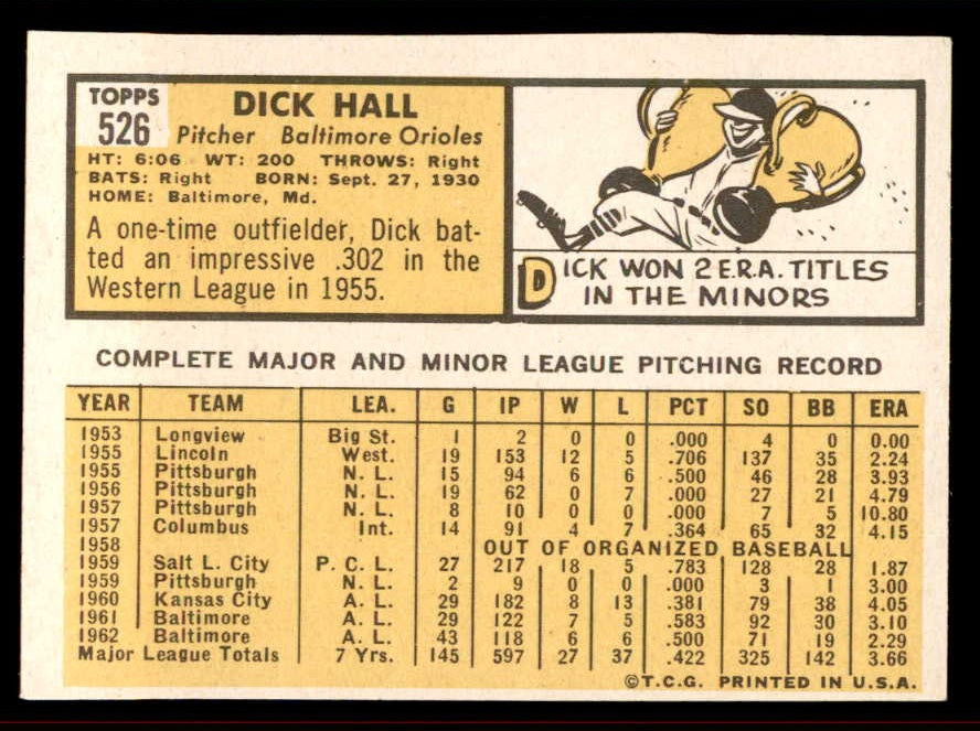 1963 Topps Baseball #526 Dick Hall Orioles NR-MT 542888