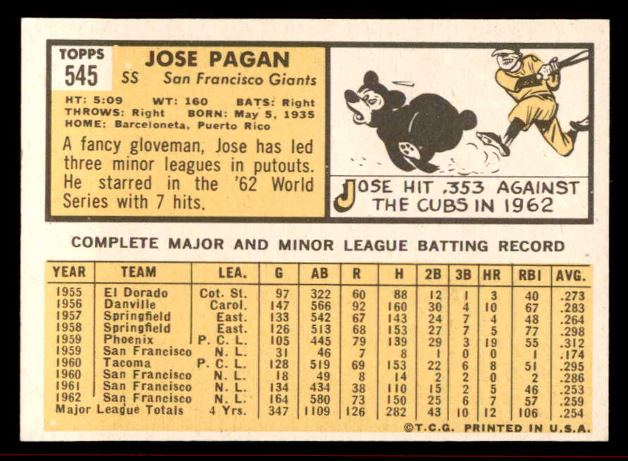 1963 Topps Baseball #545 Jose Pagan Giants NR-MT 542903