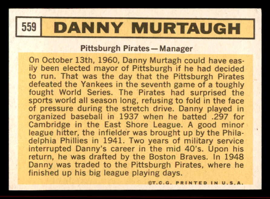 1963 Topps Baseball #559 Danny Murtaugh Pirates VG-EX/EX 542939