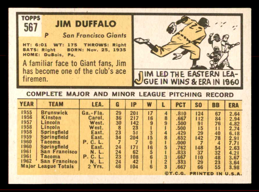 1963 Topps Baseball #567 Jim Duffalo Giants EX-MT 542929
