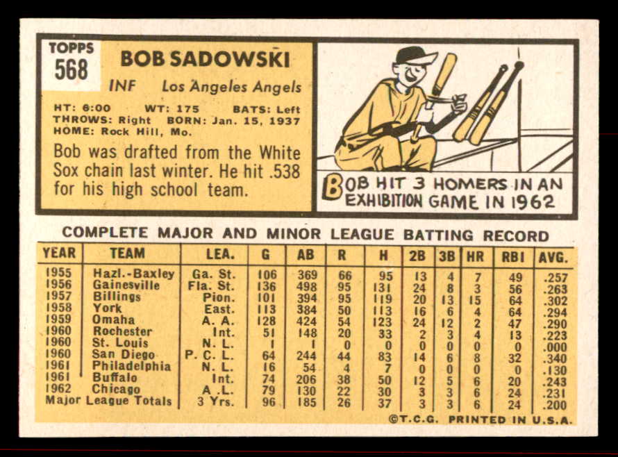 1963 Topps Baseball #568 Bob Sadowski Angels EX-MT 542930