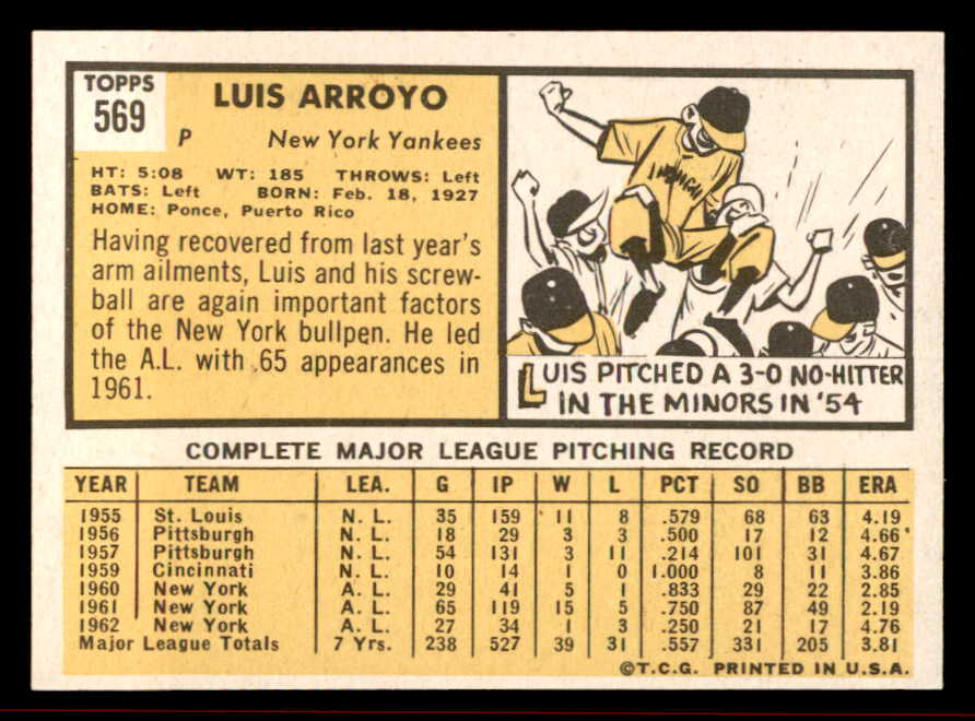 1963 Topps Baseball #569 Luis Arroyo Yankees NR-MT 542911