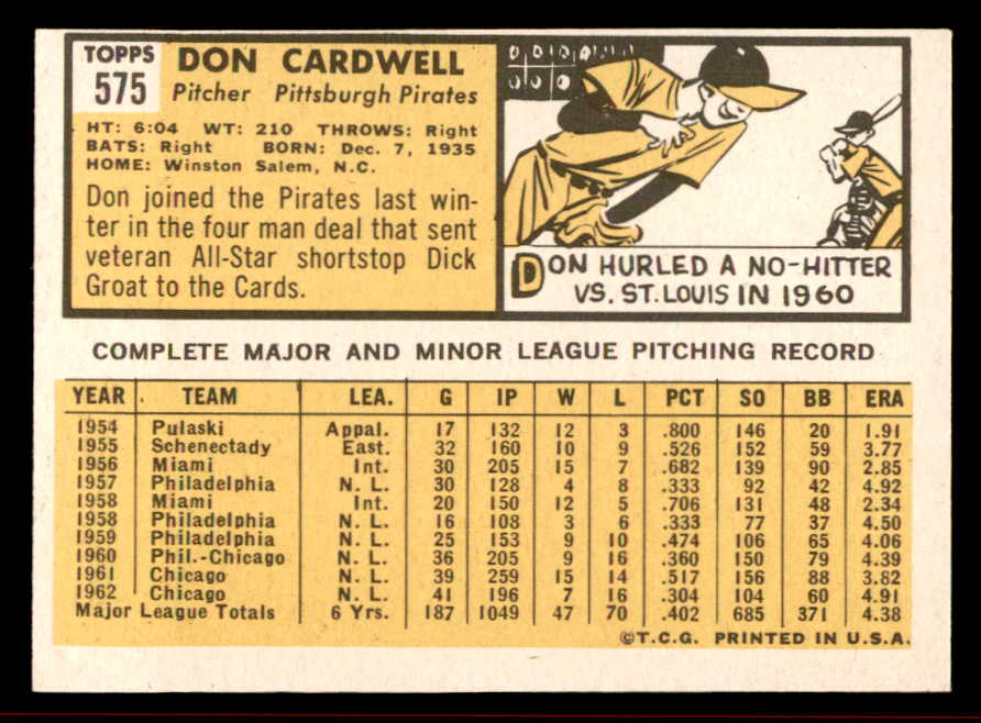1963 Topps Baseball #575 Don Cardwell Pirates EX-MT 542933