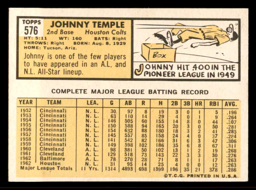 1963 Topps Baseball #576 Johnny Temple Colt .45s NR-MT 542915