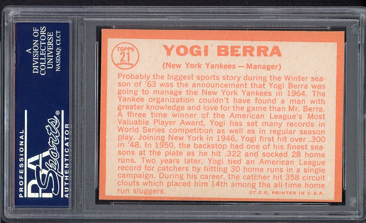 1964 Topps Baseball #021 Yogi Berra Yankees PSA 7 NM 547489