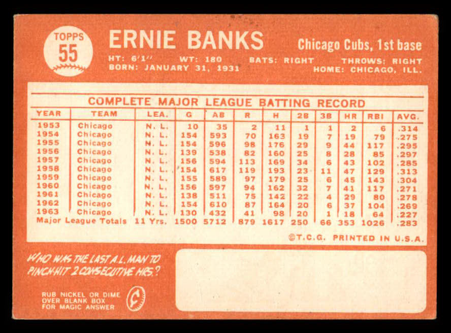 1964 Topps Baseball #055 Ernie Banks Cubs VG-EX 546193