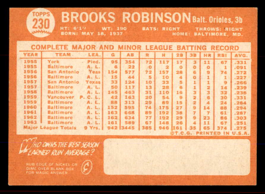 1964 Topps Baseball #230 Brooks Robinson Orioles EX-MT 545839