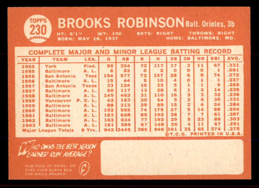 1964 Topps Baseball #230 Brooks Robinson Orioles NR-MT 545811