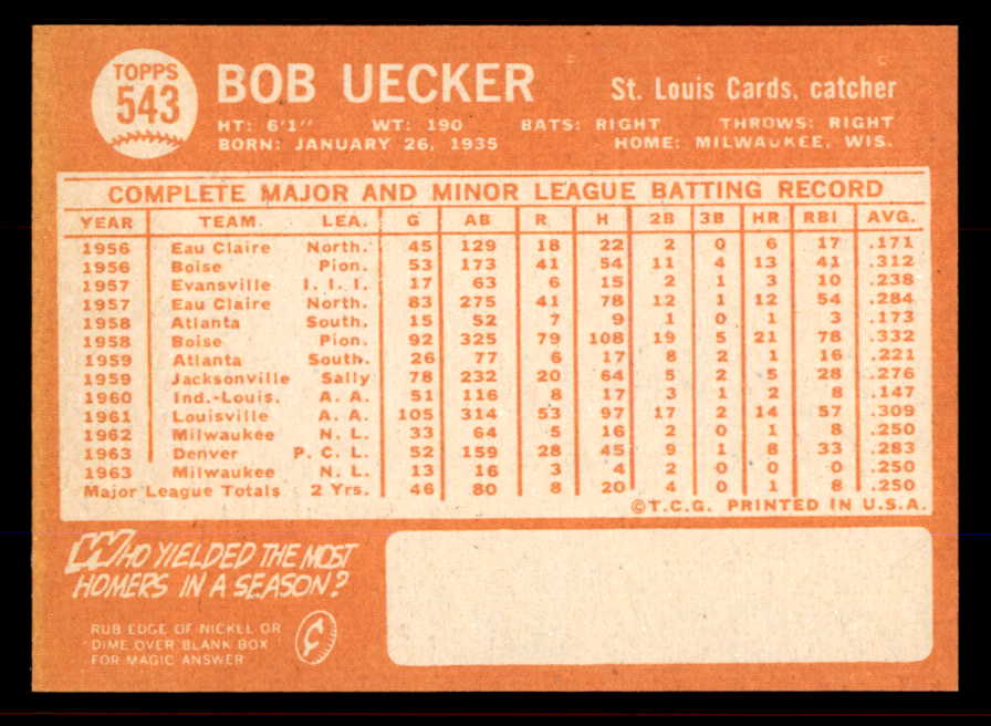 1964 Topps Baseball #543 Bob Uecker Cardinals NR-MT 545440