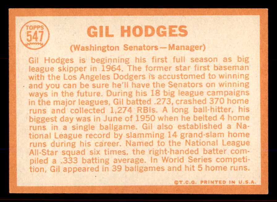1964 Topps Baseball #547 Gil Hodges Senators NR-MT 545834
