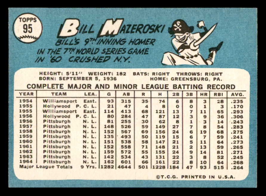 1965 Topps Baseball #095 Bill Mazeroski Pirates EX-MT 544621