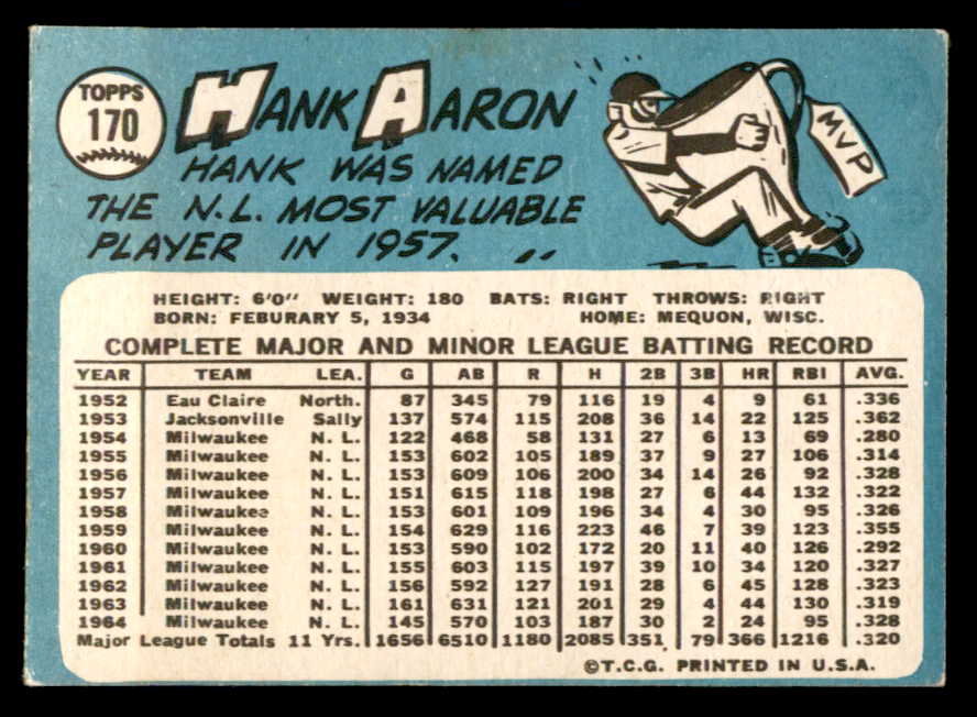 1965 Topps Baseball #170 Hank Aaron Braves EX+/EX-MT 544622