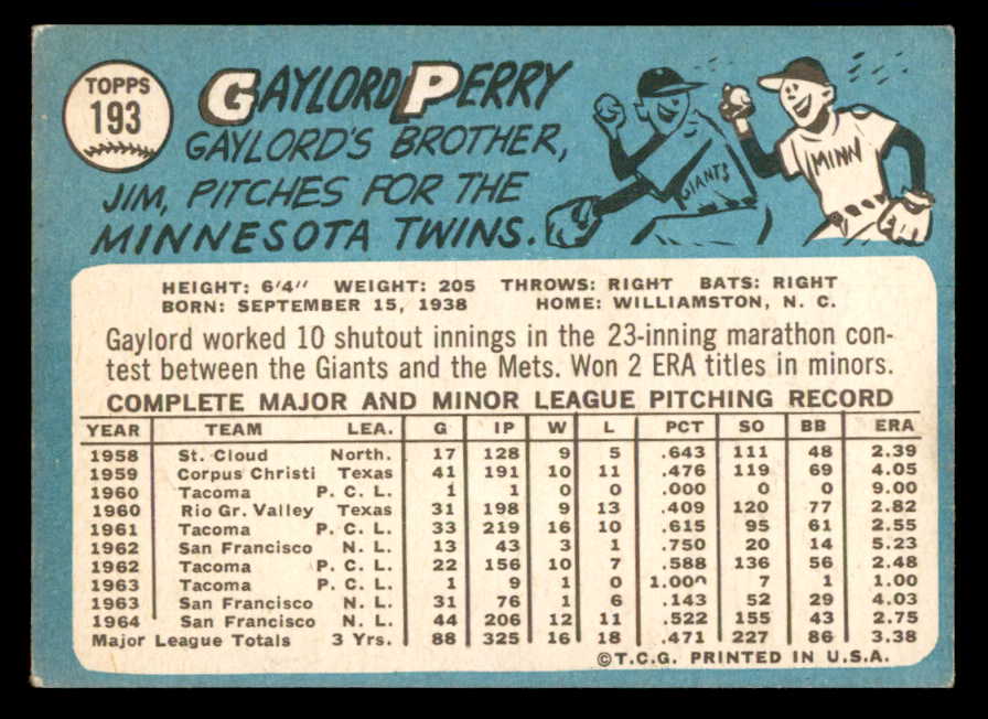 1965 Topps Baseball #193 Gaylord Perry Giants EX 540765