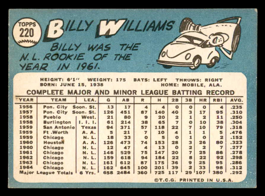 1965 Topps Baseball #220 Billy Williams Cubs EX+/EX-MT 546196