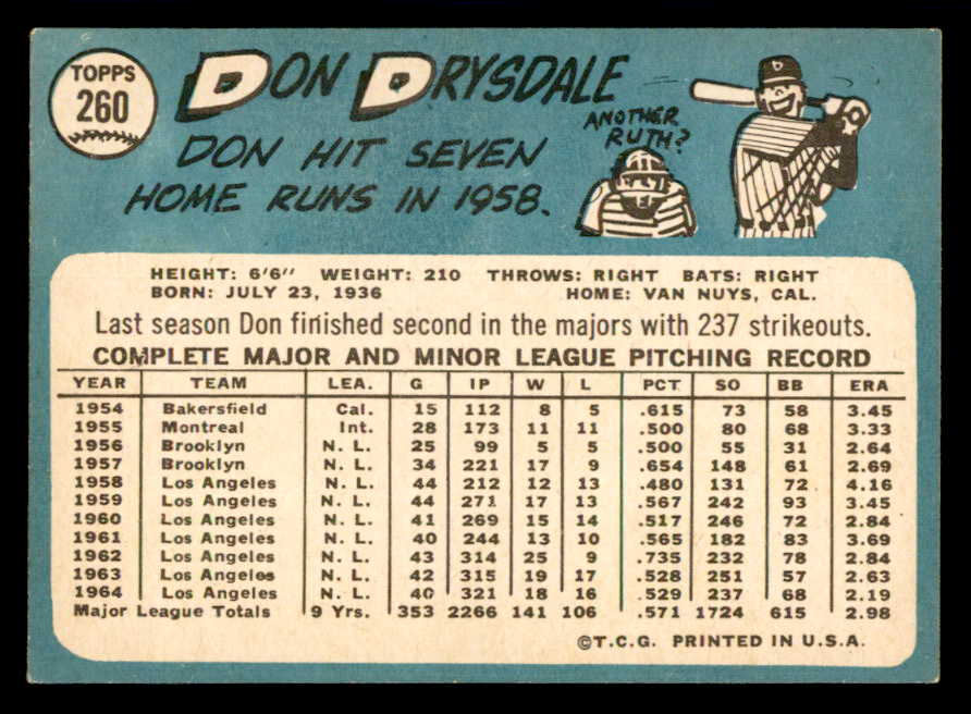 1965 Topps Baseball #260 Don Drysdale Dodgers VG-EX 540763