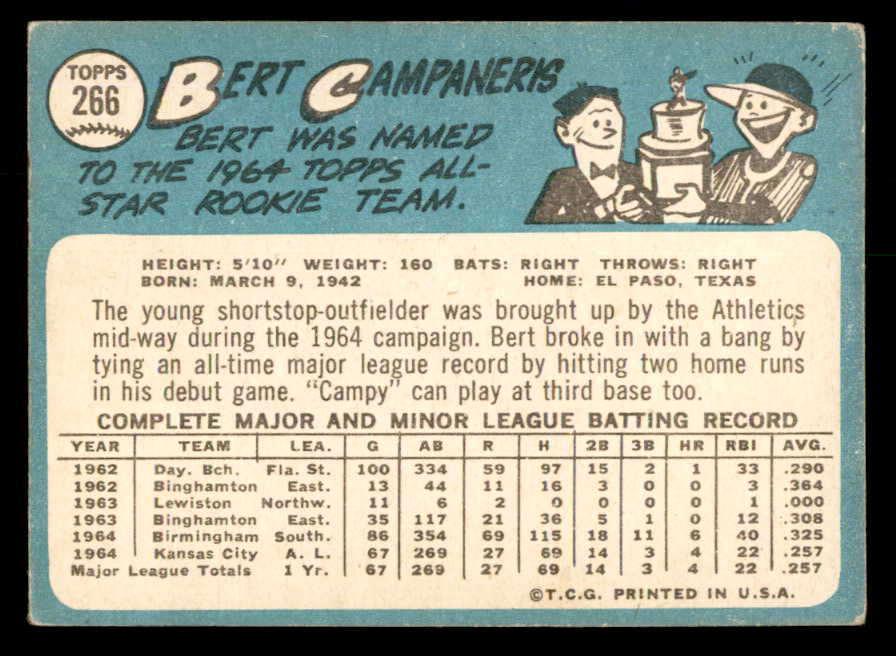 1965 Topps Baseball #266 Bert Campaneris A's VG-EX 540830