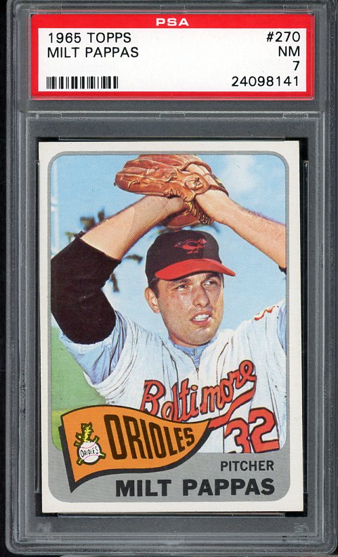 1965 Topps Baseball #270 Milt Pappas Orioles PSA 7 NM 538334