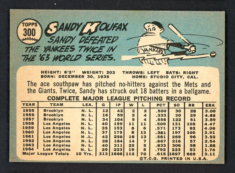 1965 Topps Baseball #300 Sandy Koufax Dodgers EX-MT 546960