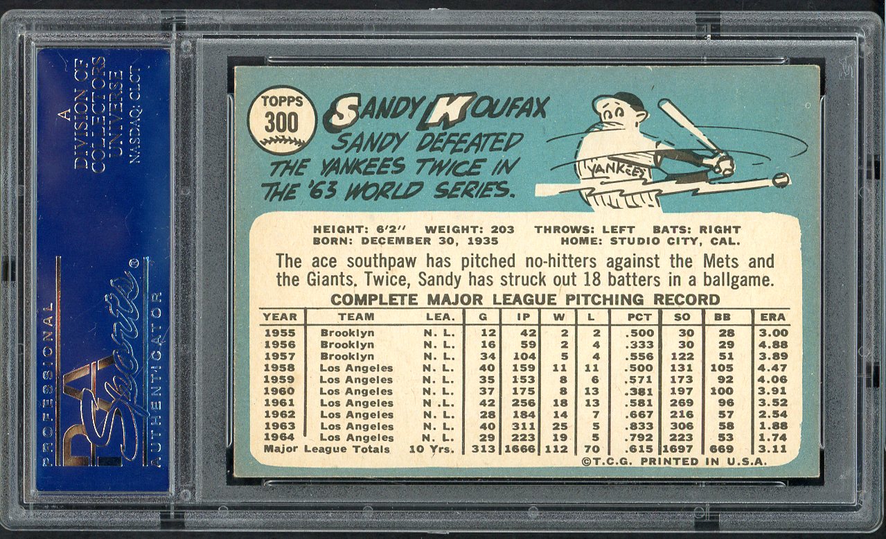 1965 Topps Baseball #300 Sandy Koufax Dodgers PSA 6 EX-MT 545300