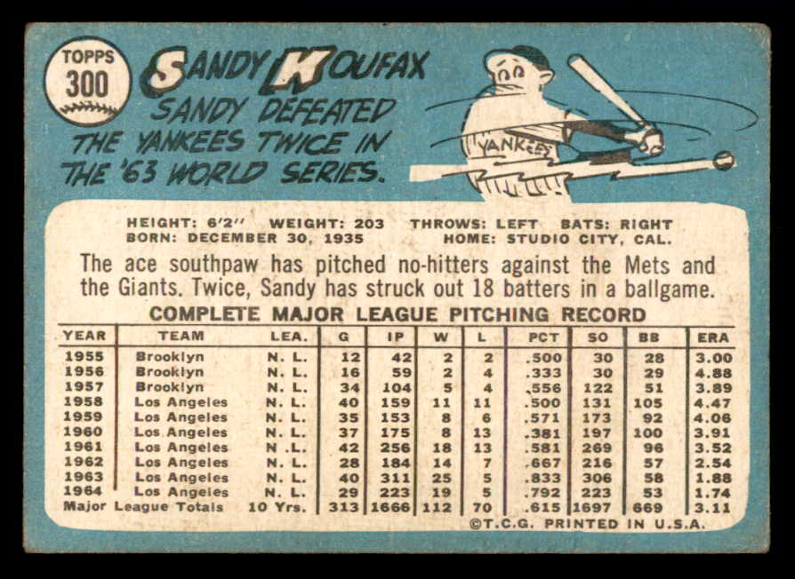 1965 Topps Baseball #300 Sandy Koufax Dodgers VG 540779