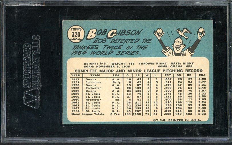 1965 Topps Baseball #320 Bob Gibson Cardinals SGC 5 EX 538429