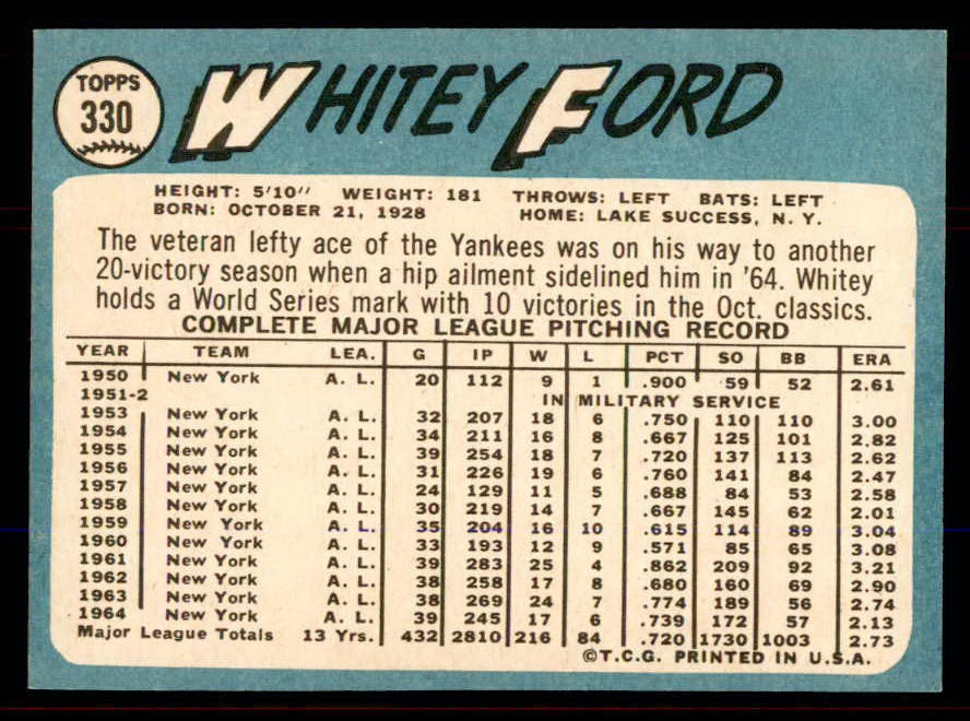 1965 Topps Baseball #330 Whitey Ford Yankees EX-MT 545684