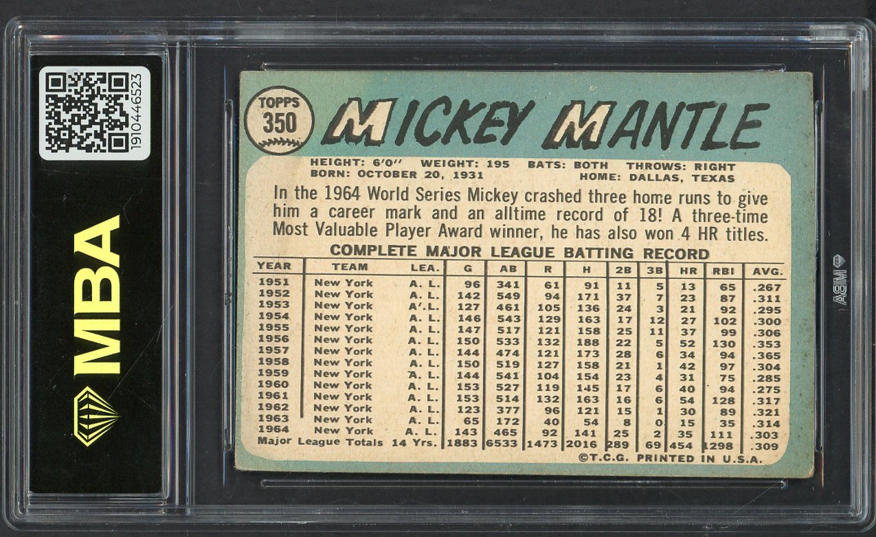 1965 Topps Baseball #350 Mickey Mantle Yankees MBA 2 GD 546806