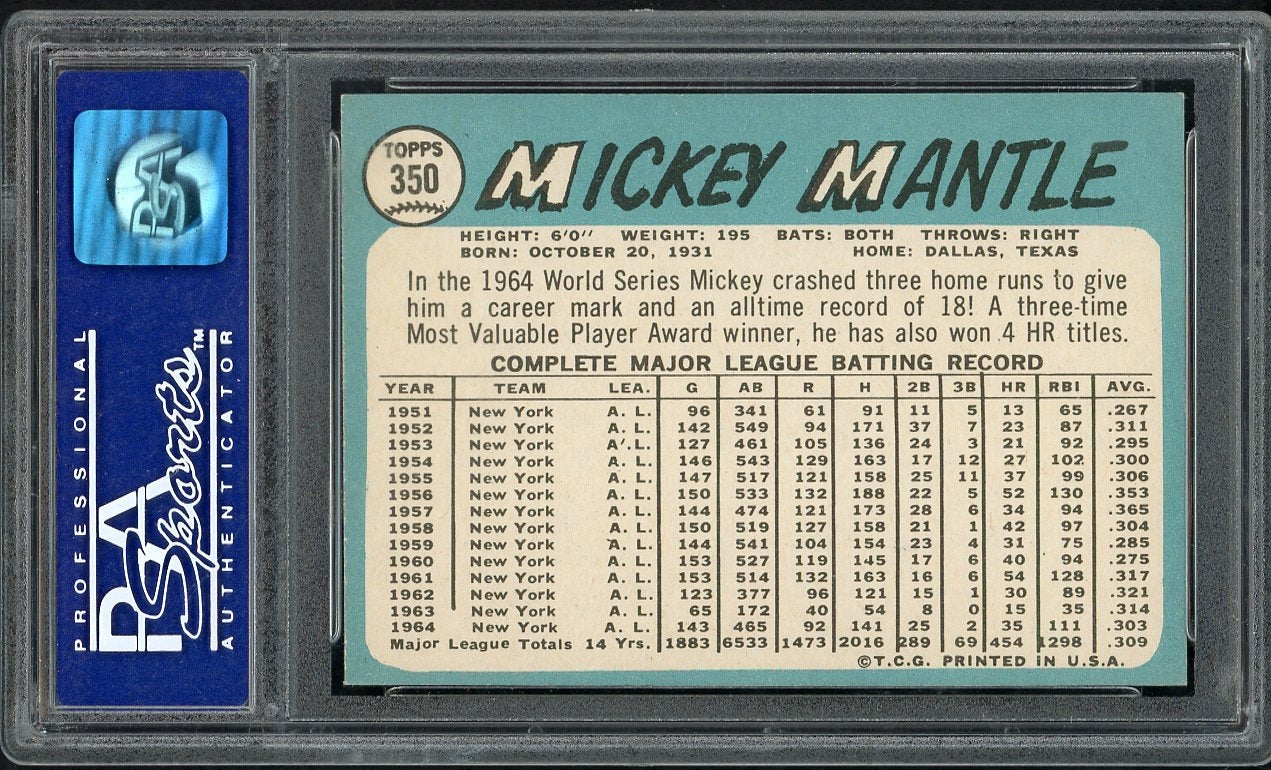 1965 Topps Baseball #350 Mickey Mantle Yankees PSA 8 NM/MT oc 544722