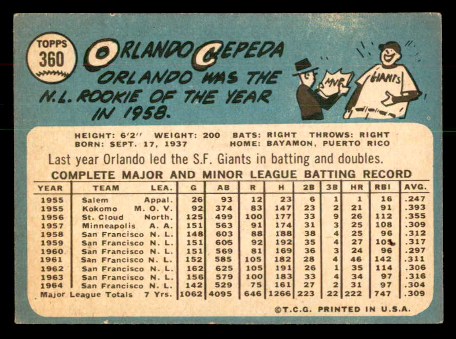 1965 Topps Baseball #360 Orlando Cepeda Giants VG-EX 541314