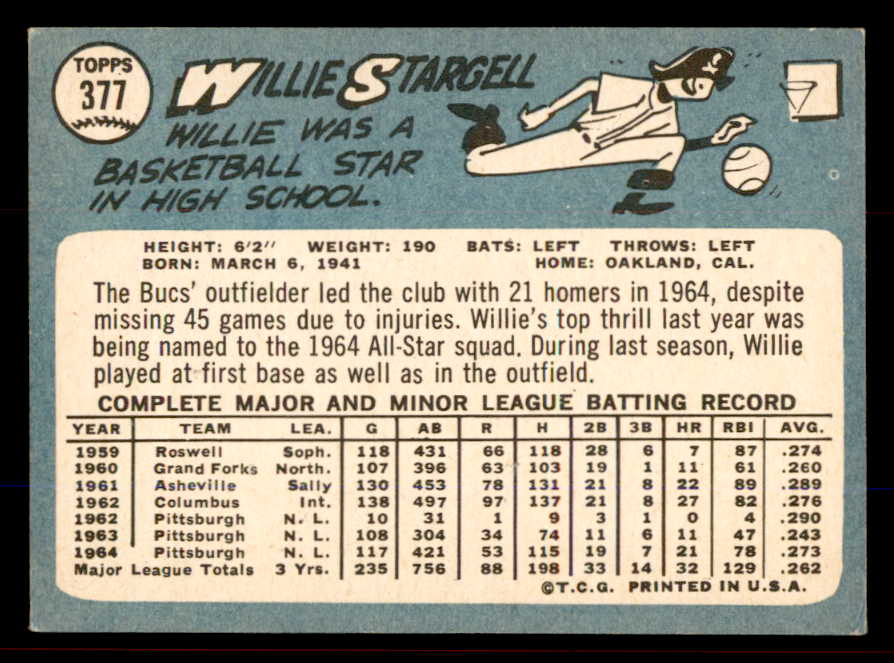 1965 Topps Baseball #377 Willie Stargell Pirates EX+/EX-MT 545480