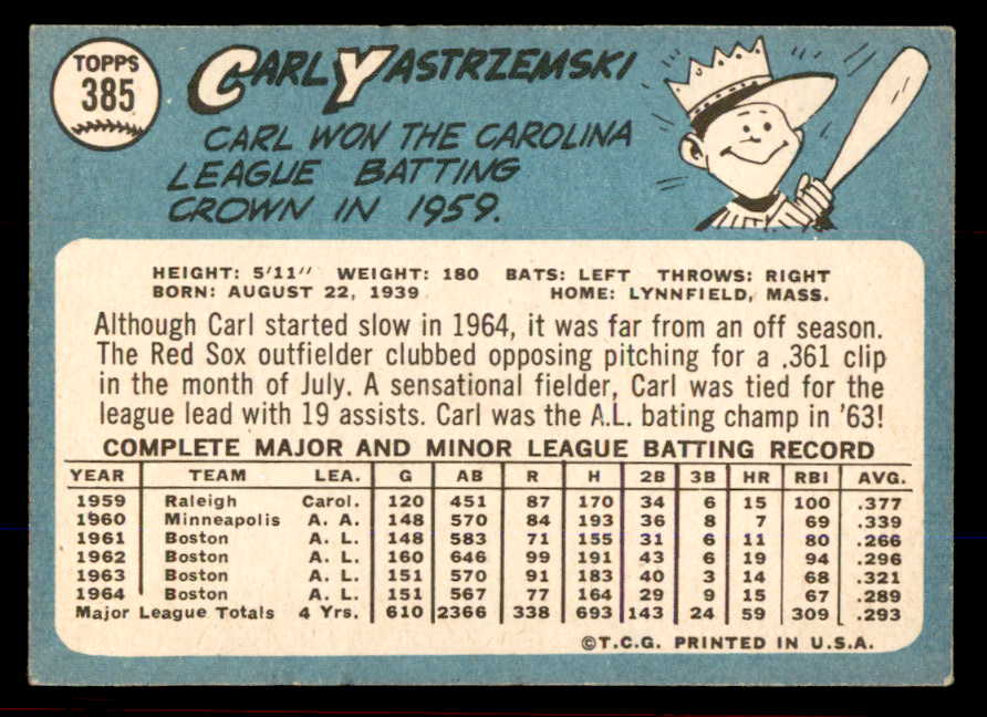 1965 Topps Baseball #385 Carl Yastrzemski Red Sox EX-MT 545474