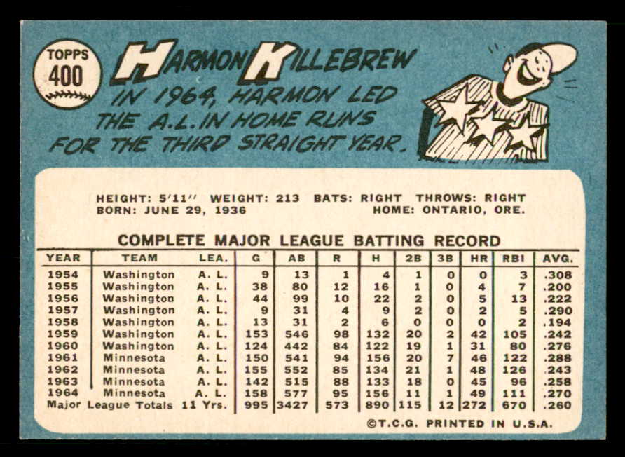 1965 Topps Baseball #400 Harmon Killebrew Twins EX-MT 539734