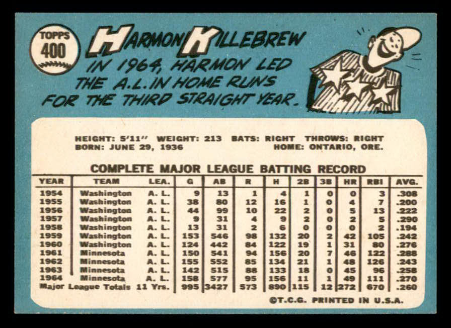1965 Topps Baseball #400 Harmon Killebrew Twins VG-EX 547077