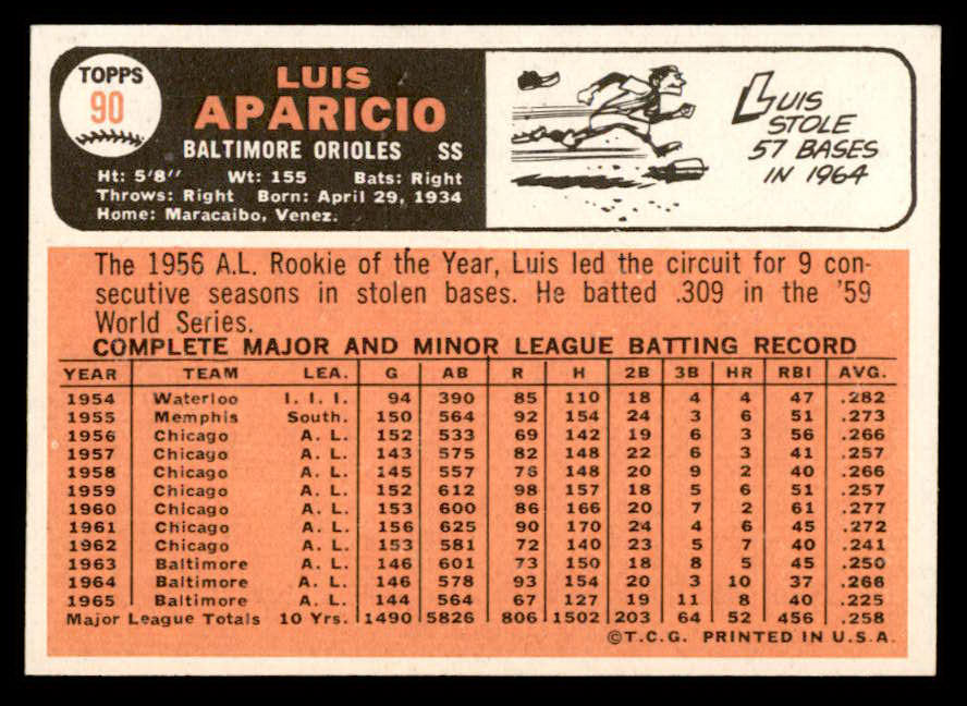 1966 Topps Baseball #090 Luis Aparicio Orioles EX-MT 547068