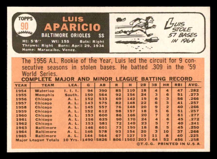 1966 Topps Baseball #090 Luis Aparicio Orioles EX-MT 547182