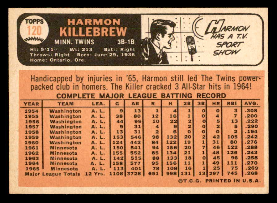 1966 Topps Baseball #120 Harmon Killebrew Twins EX-MT 547069