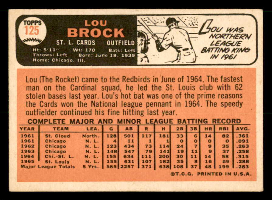 1966 Topps Baseball #125 Lou Brock Cardinals EX-MT 539764