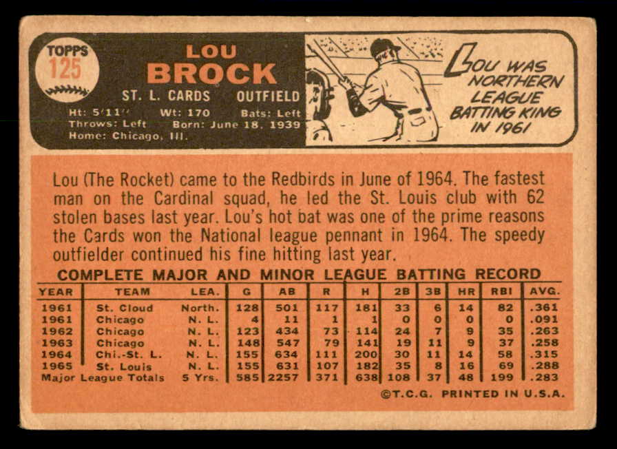 1966 Topps Baseball #125 Lou Brock Cardinals FR-GD 540871