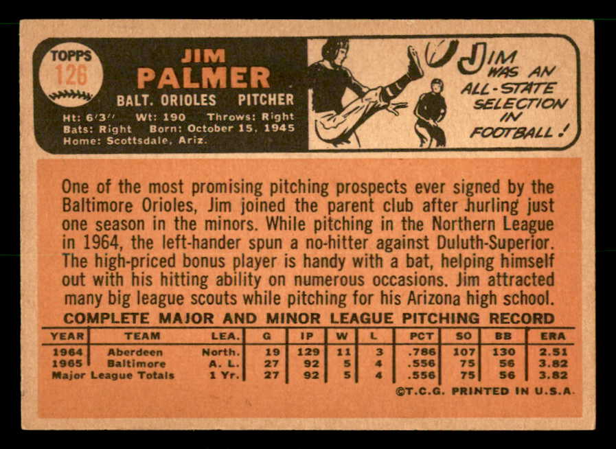 1966 Topps Baseball #126 Jim Palmer Orioles EX-MT 539772
